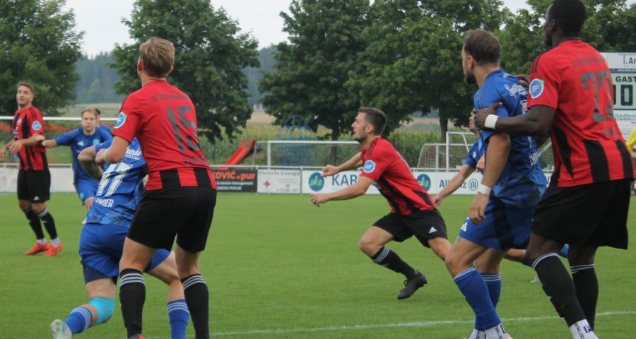 Dabei begannen die Haller furios, bereits nach 30 Sekunden der erste Eckball für das Haller Team. Aber bereits hier zeichnete sich eine Schwäche der Spf an diesem Tage ab, Eckbälle oder Flanken kamen so gut wie nie an. Nach einer kurzen Druckphase kam Dorfmerkingen dann besser in die Begegnung, immer wieder ließ die Haller Defensive Flanken zu und schaffte dadurch immer wieder etwas Gefahr für das Haller Tor. Aber die Spf Defensive stand im Zentrum relativ gut. Aufregung in der 12. Minute. Halls Keeper Bojan Spasojevic parierte nach einer Flanke den Kopfball von Nico Rodewald, nach Ansicht der Gastgeber aber hinter der Torlinie. SR John Köber ließ aber weiterlaufen. In der 24. Minute kam Lucas Schwarzer nach einer weiteren Flanke Nähe Strafraumkante zum Abschluss, doch sein Versuch ging abgefälscht über das Haller Tor. Und plötzlich hatten die Haller ein ganz dickes Ding zur Führung auf dem Fuß. Flanke von Azad Toptik auf den langen Pfosten, Lorenz Minder, etwa drei Meter vor dem Tor versuchte es direkt, aber Dorfmerkingens Keeper Christian Zech klärte ganz stark. Kurz darauf (39. Minute) ging Benjamin Walter über links durch, aber Endstation war Torhüter Bojan Spasojevic.