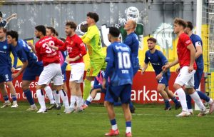 Bis zum Ende entwickelt sich dann noch ein offener Schlagabtausch. Hall wehrt sich nach Kräften und versucht, den entscheidenden Konter zu setzen, während Holzhausen die drei Auswärtspunkte mitnehmen will, um an Tabellenführer Reutlingen dranzubleiben. Große Torchancen gibt es aber keine mehr, sodass es beim gerechten Unentschieden bleibt. „Es war ein guter Fight von uns, wir sind zwar schlecht in die Partie gekommen und hatten keinen Zugriff, aber wir haben uns das 1:1 dann erarbeitet“, bilanziert Thorsten Schift.